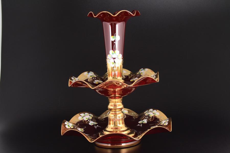 Фарфоровая этажерка (Горка) 2 яруса 50 см "Лепка красная" E-S