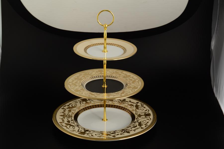 Фарфоровая этажерка (Горка) 3 яруса Harmony Crem Black
