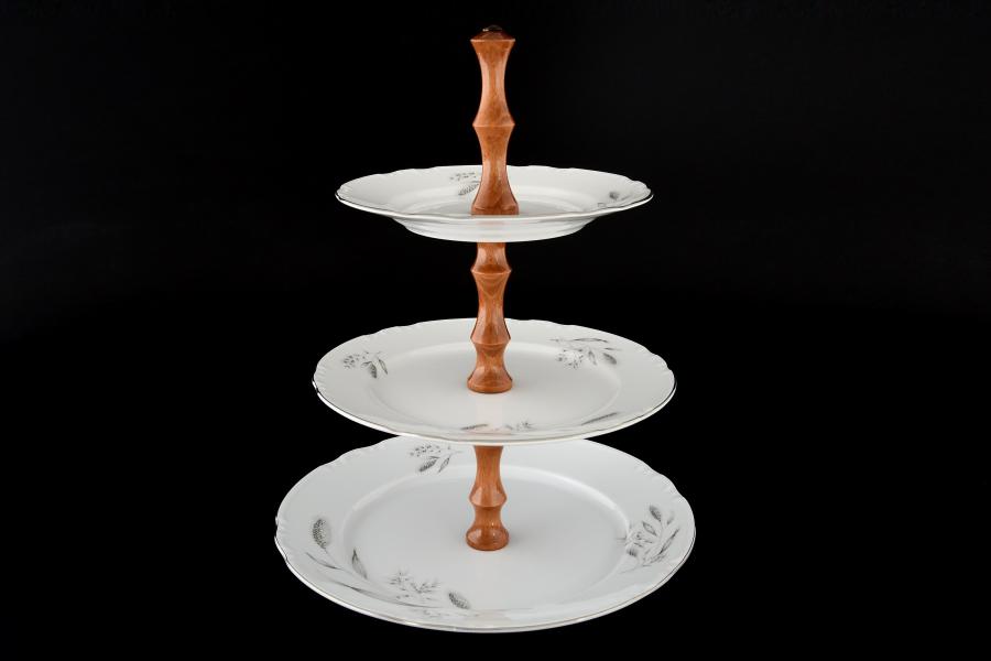 Фарфоровая этажерка (Горка) 3 яруса Констанция Серебряные колосья