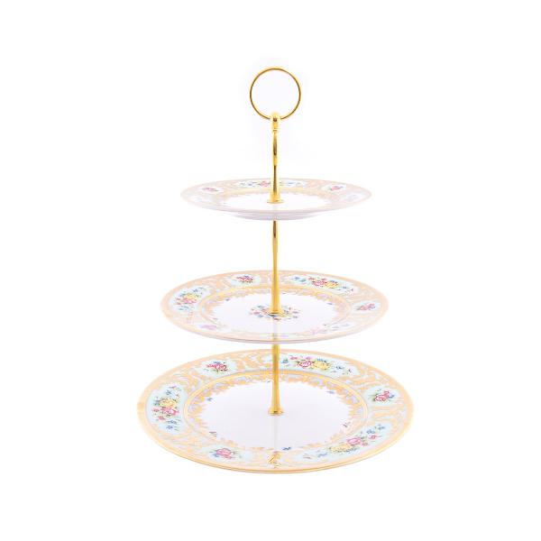 Фарфоровая этажерка (Горка) три яруса Falkenporzellan Vienna Seladon Gold