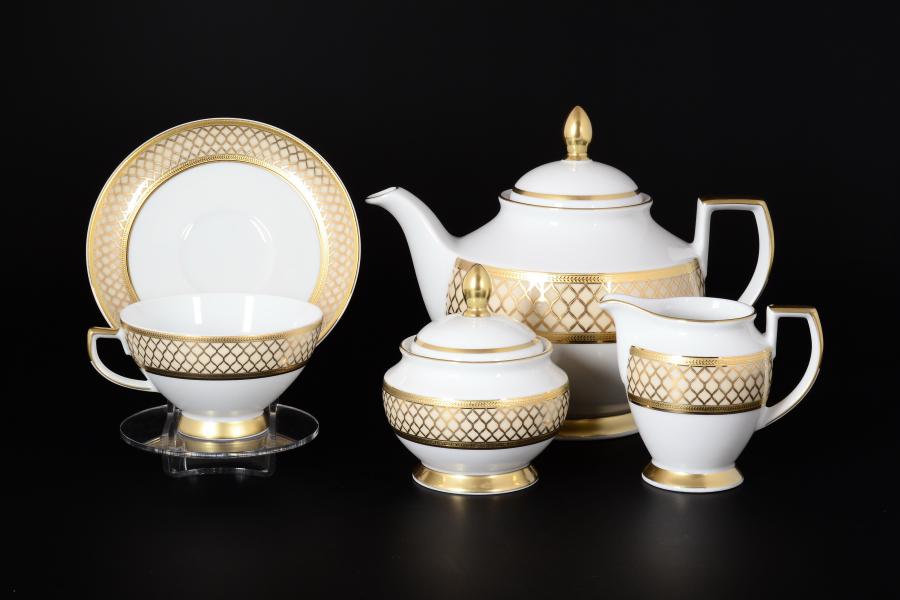Комплектация чайного сервиза на 6 персон falkenporzellan (фалкенпоцеллан) valencia creme gold: