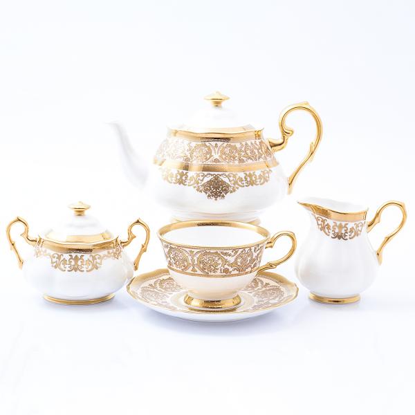 Фарфоровый чайный сервиз Prouna Golden Romance Cream Gold 6 персон 17 предметов