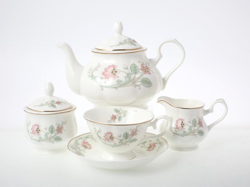 Фарфоровый чайный сервиз Цветочная феерия на 6 персон 15 предметов