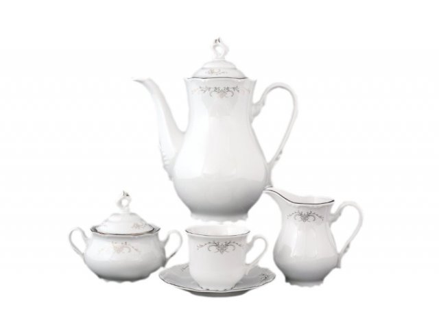 Комплектация кофейного сервиза на 6 персон thun (тхун) серый орнамент отводка платина: