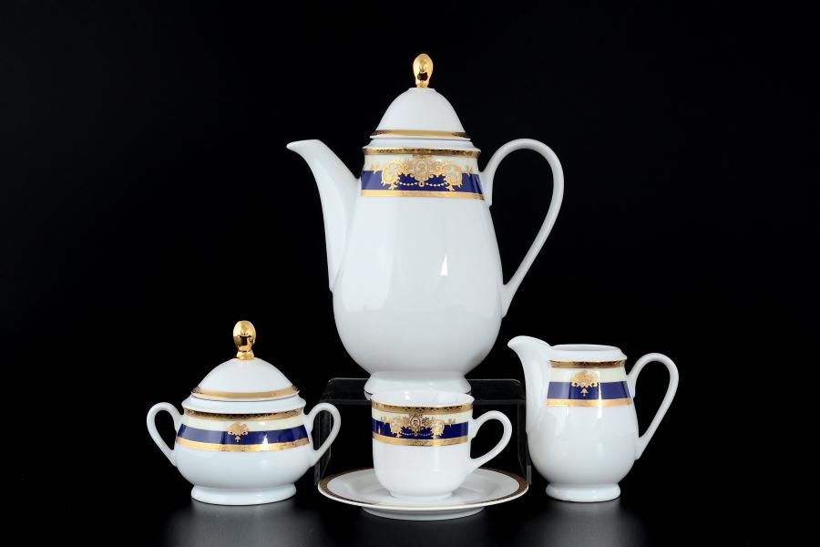 Комплектация кофейного сервиза на 6 персон thun (тхун) кобальтовая лента: