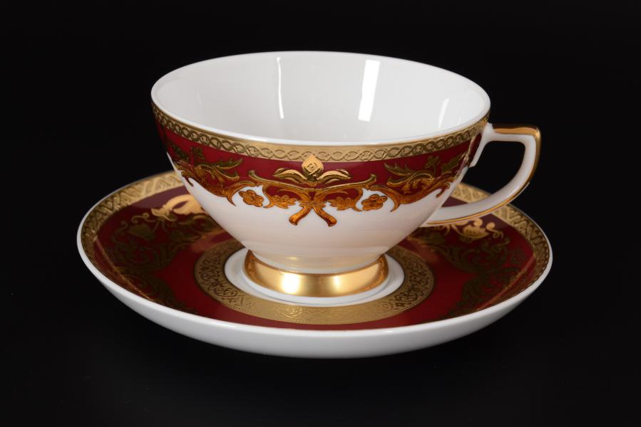 Комплект чайных пар 220 мл Natalia bordeaux gold (6 шт)