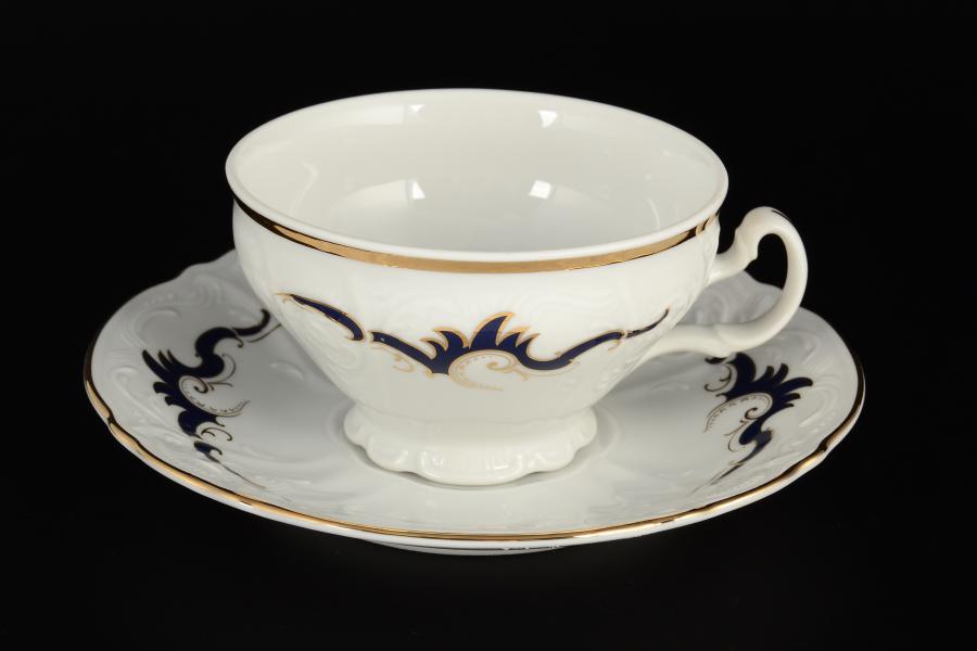 Комплект чайных пар Bernadotte Синие вензеля 220 мл(6 пар)