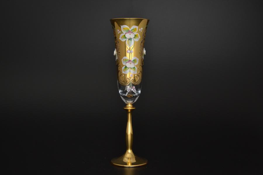 Комплект для шампанского "Лепка прозрачная" E-V золотая ножка Арт. 10190