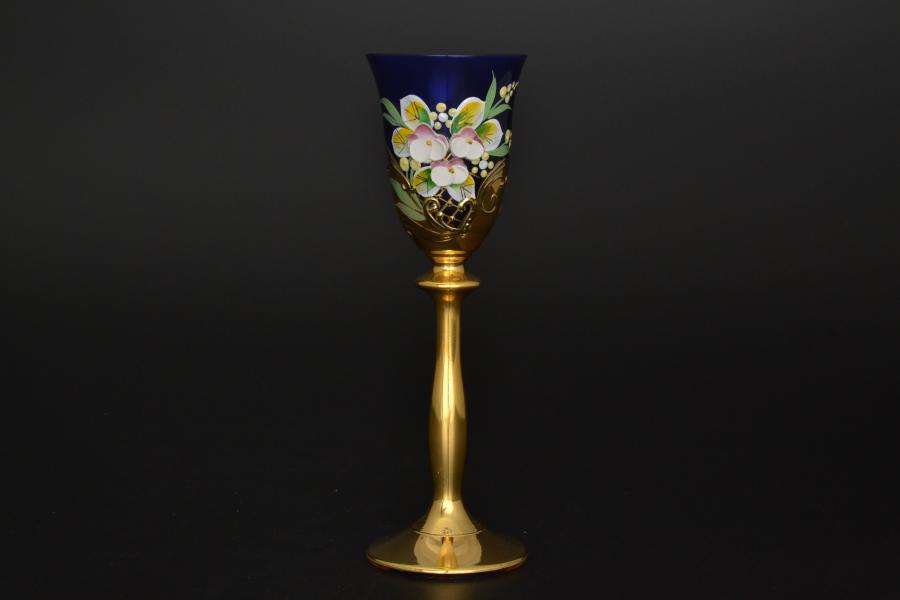Комплект рюмок для водки золотая ножка Лепка синяя E-S Арт. 10209