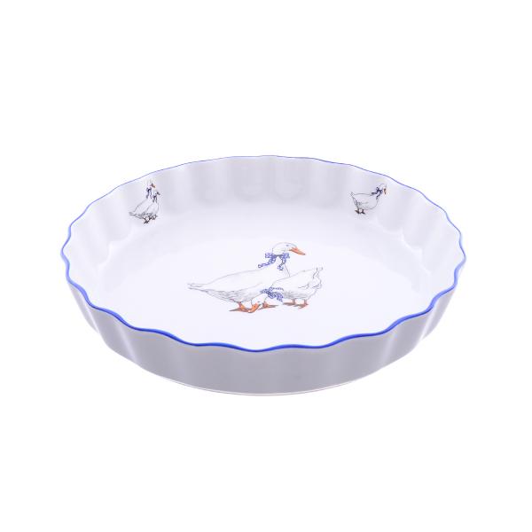 Круглое блюдо для запекания 21 см декор Гуси жаропр. фарфор