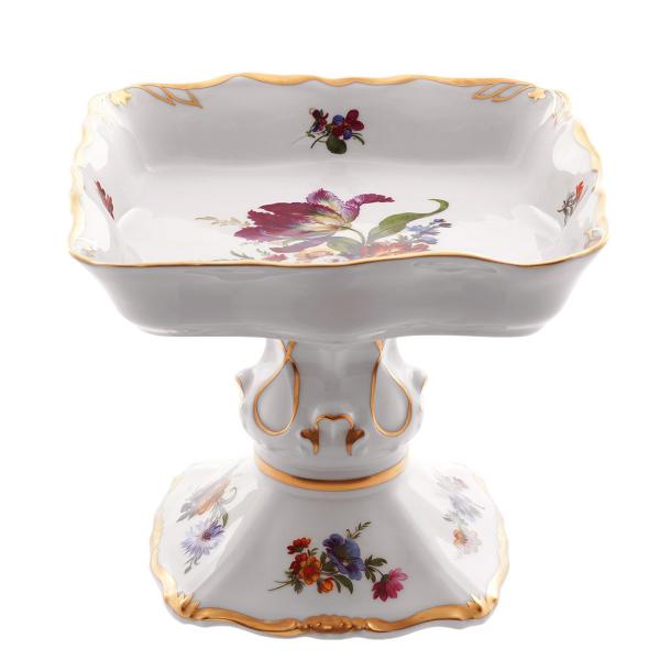 Салатница квадратная на ножке Queen's Crown Мейсенский букет 19см