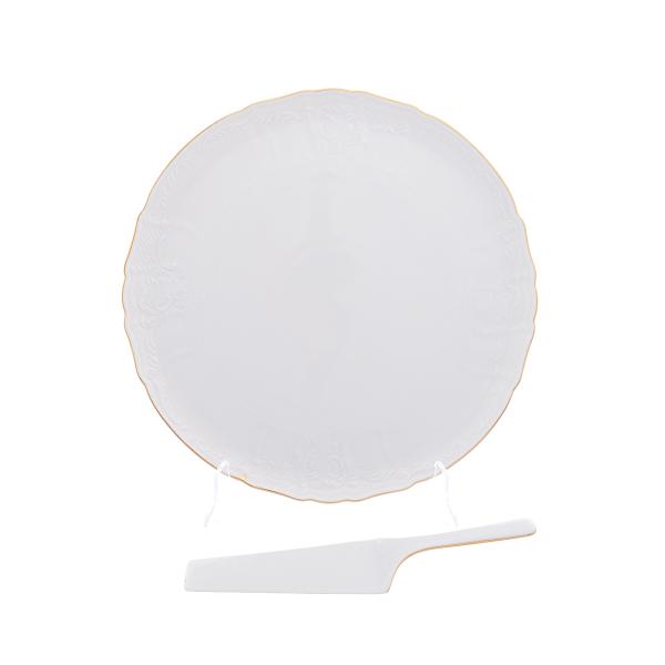 Тарелка для торта с лопаткой Bernadotte Белый узор 32 см